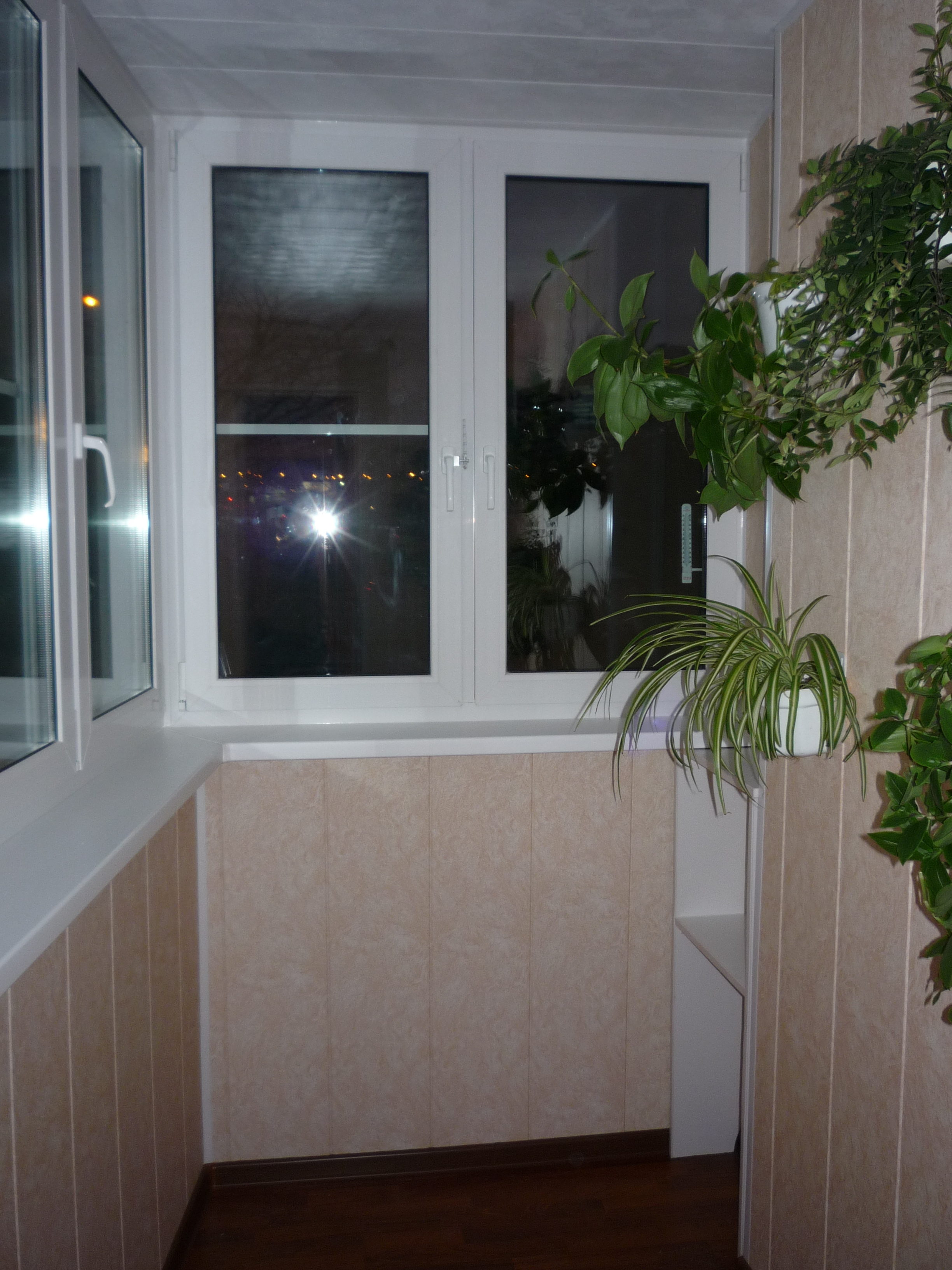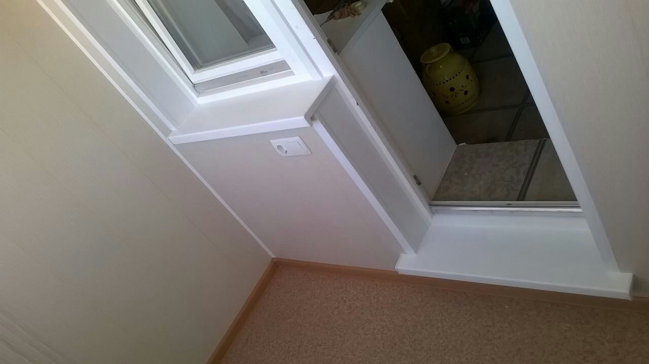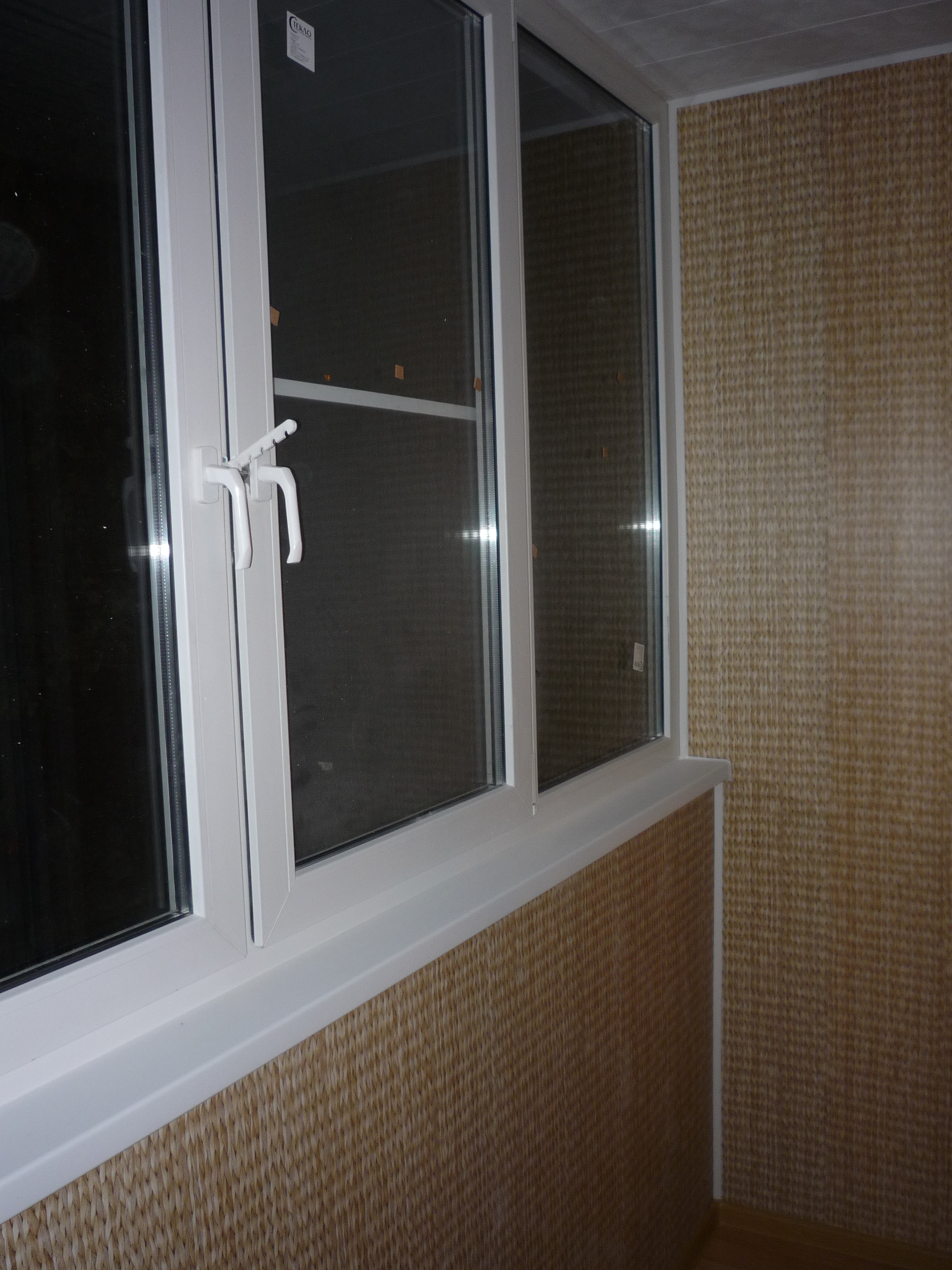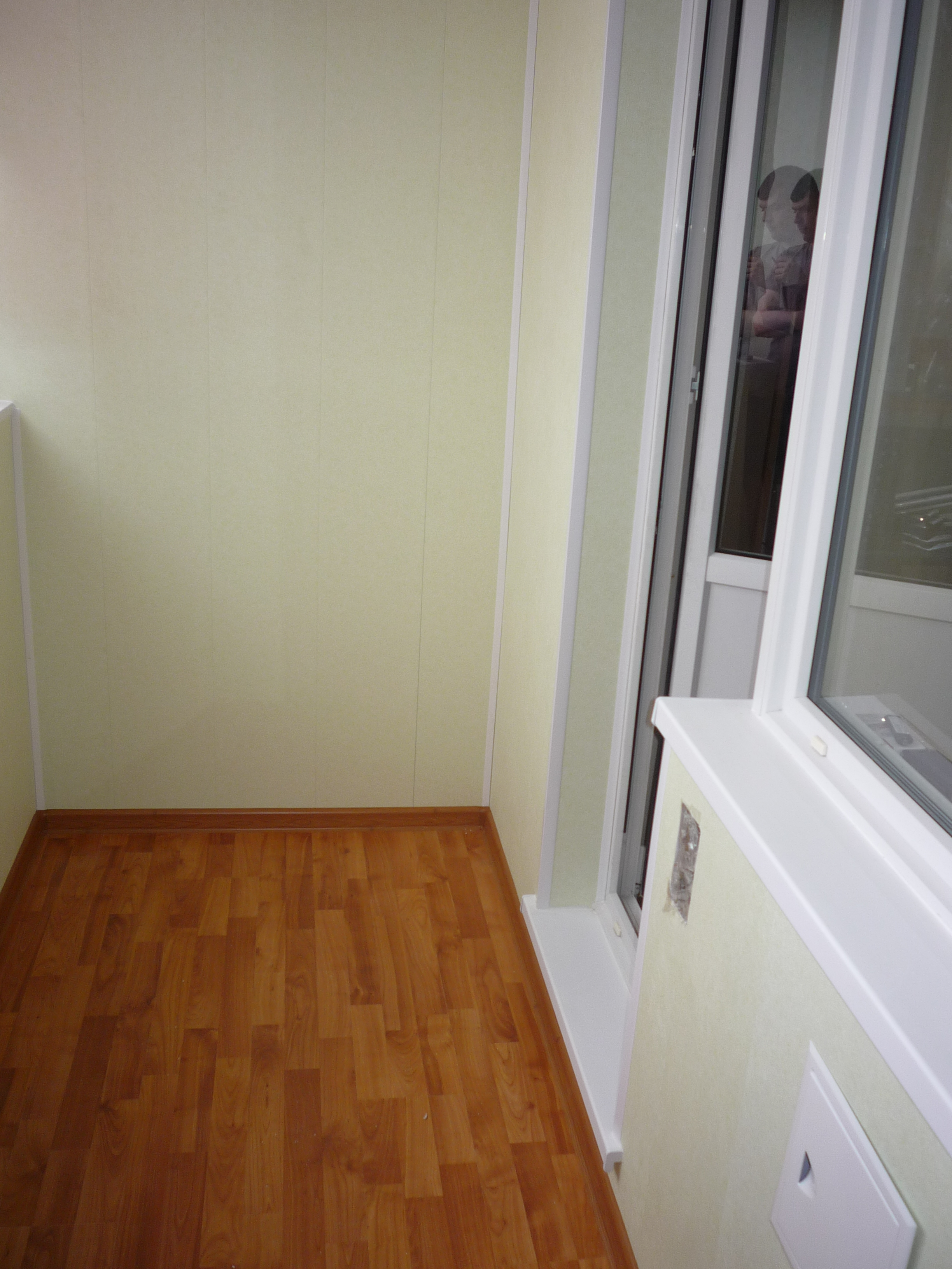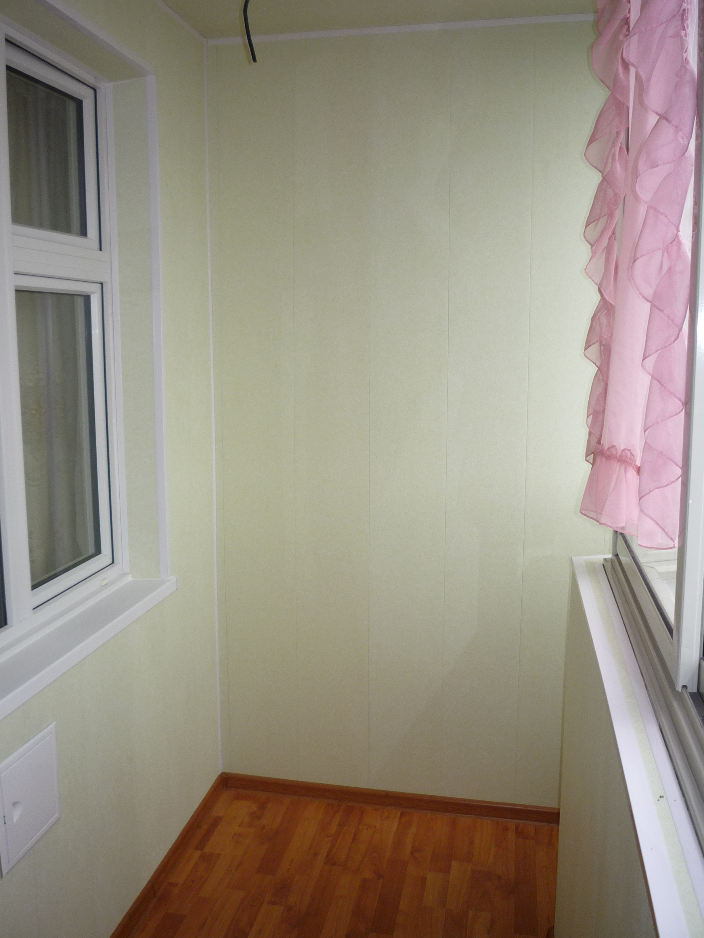 4 сентября были закончены работы по адресу Москва, ул. Коломенская. Установка остекления из ПВХ профиля Века, отделка с утеплением 50 мм с электрикой (бра, розетка, выключатель), стены и потолок панели ПВХ, пол ламинат.