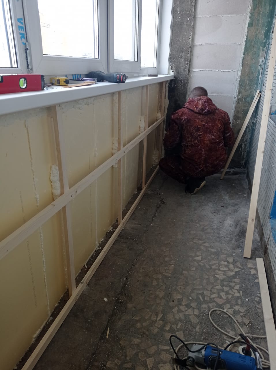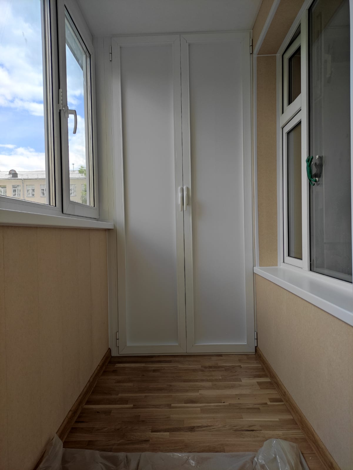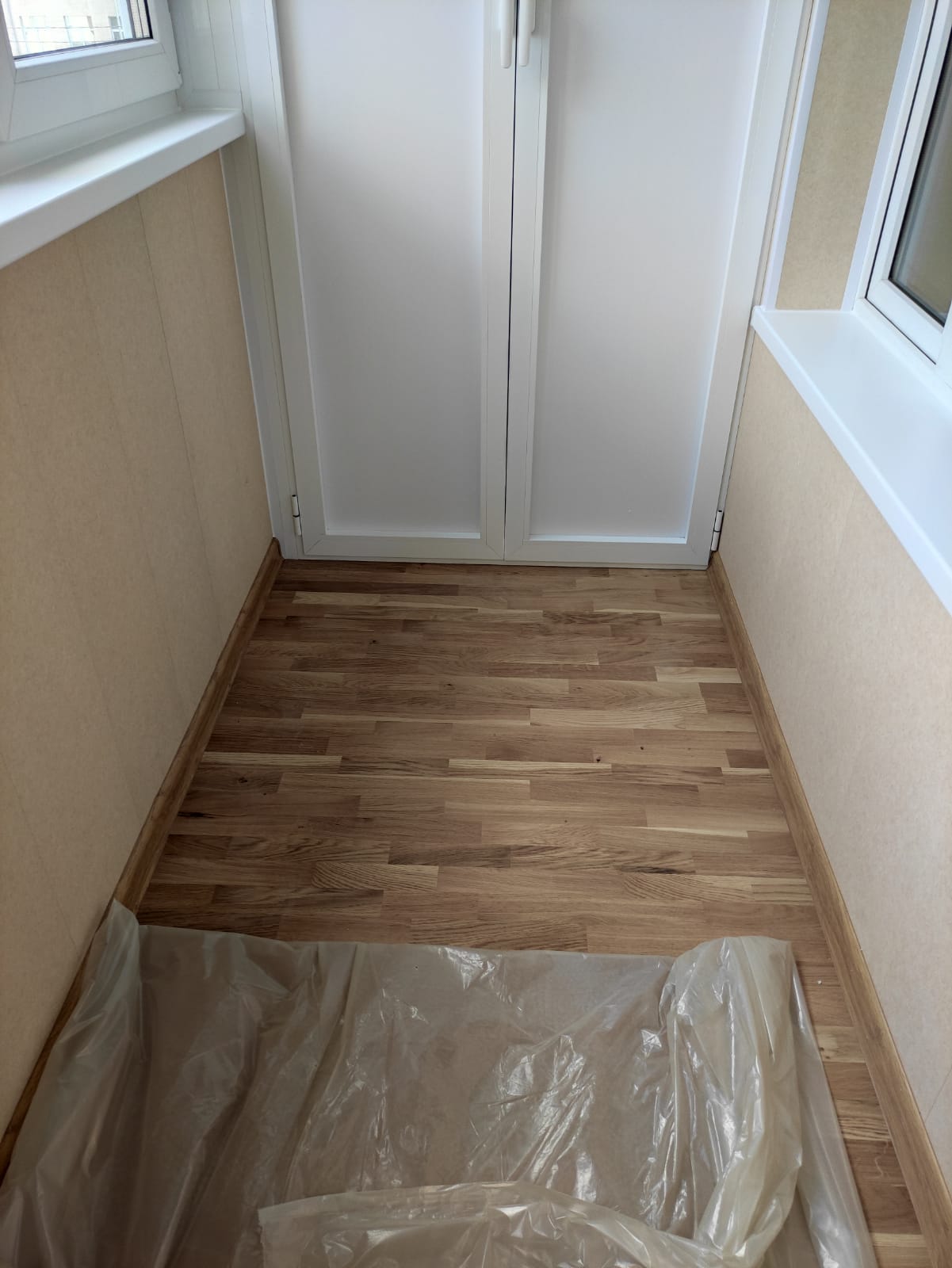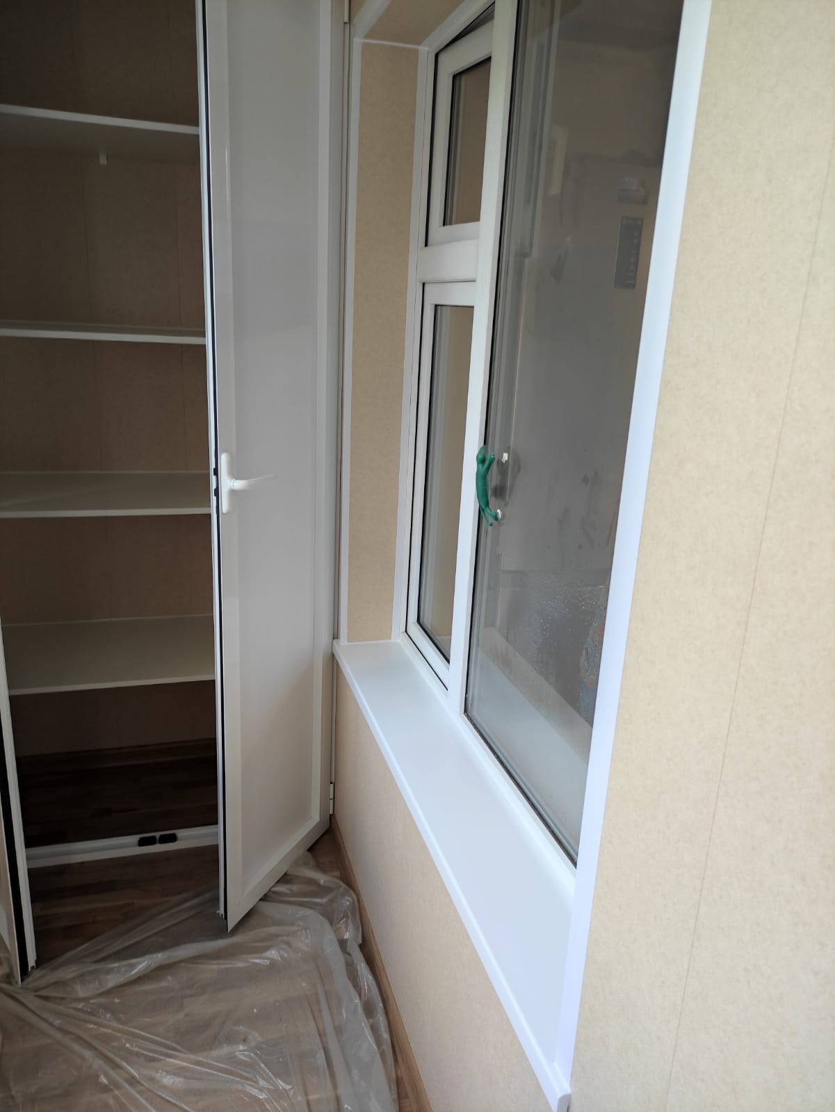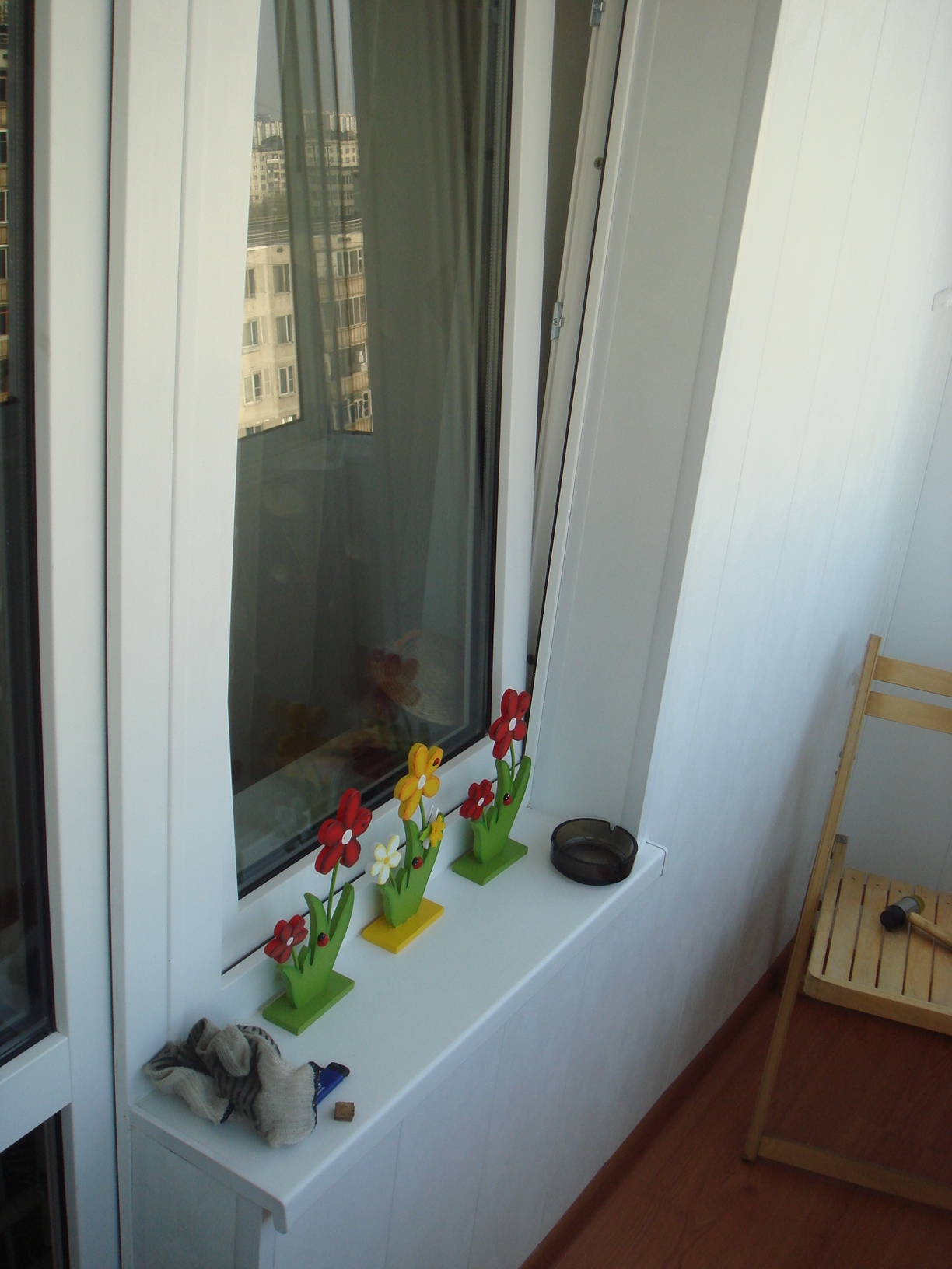 4 сентября были закончены работы по адресу Москва, ул. Коломенская. Установка остекления из ПВХ профиля Века, отделка с утеплением 50 мм с электрикой (бра, розетка, выключатель), стены и потолок панели ПВХ, пол ламинат.