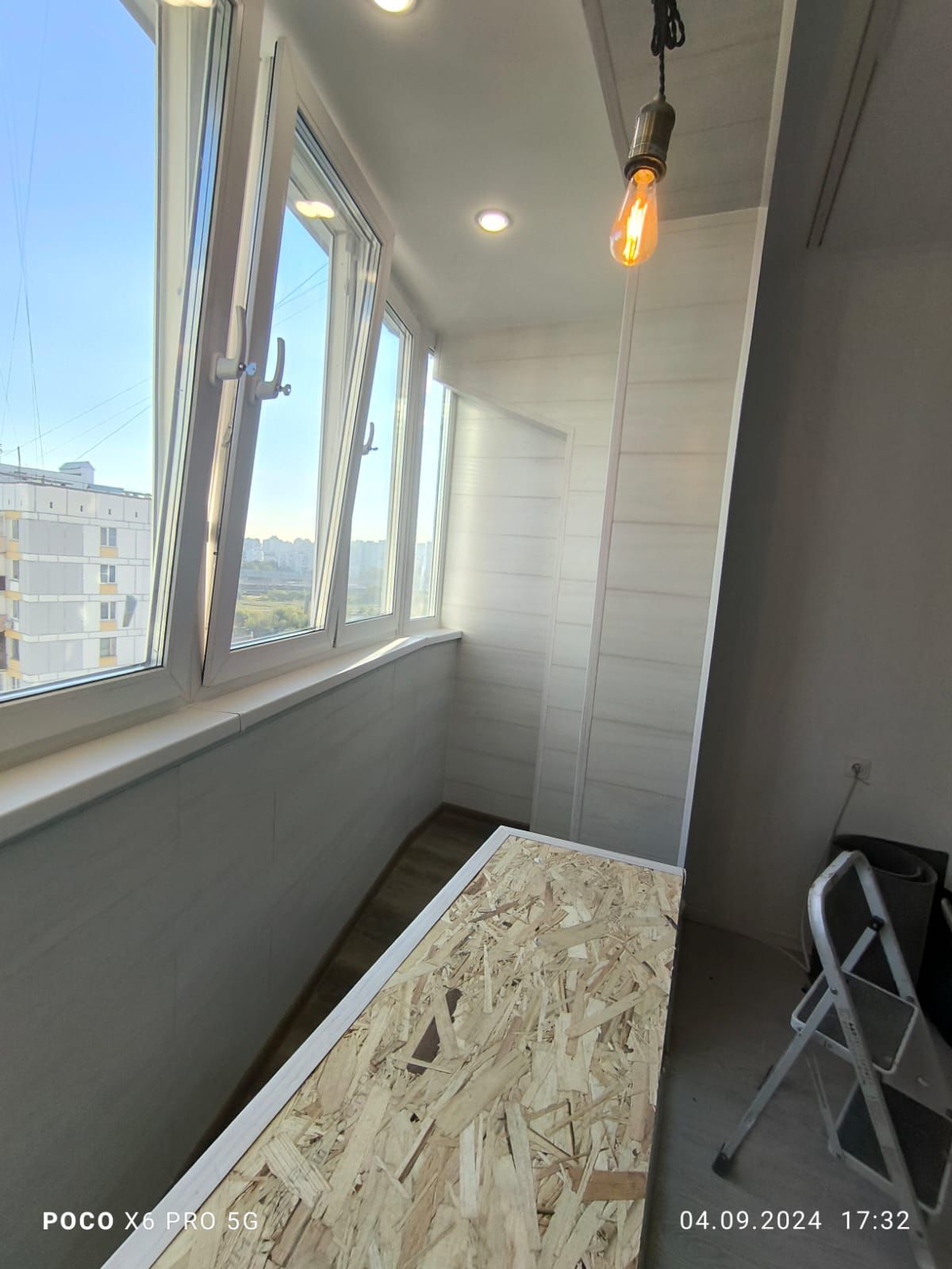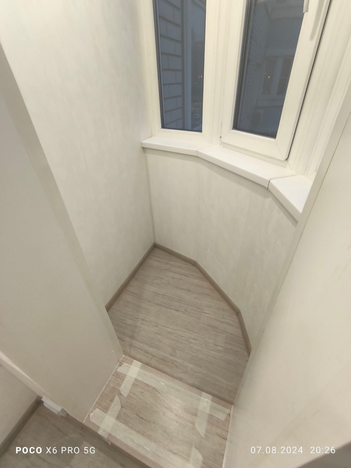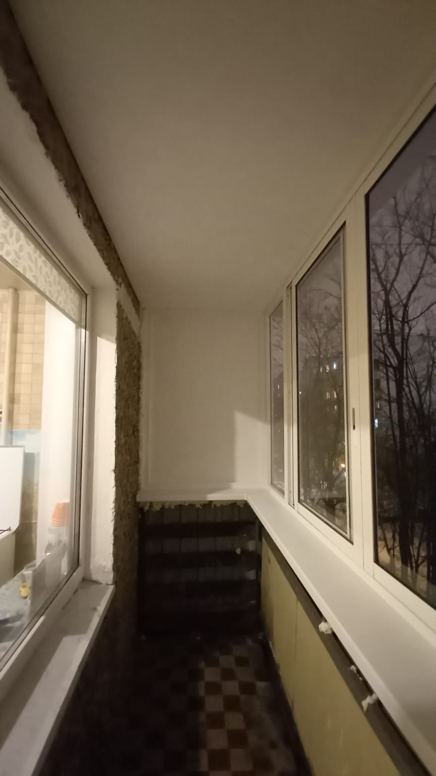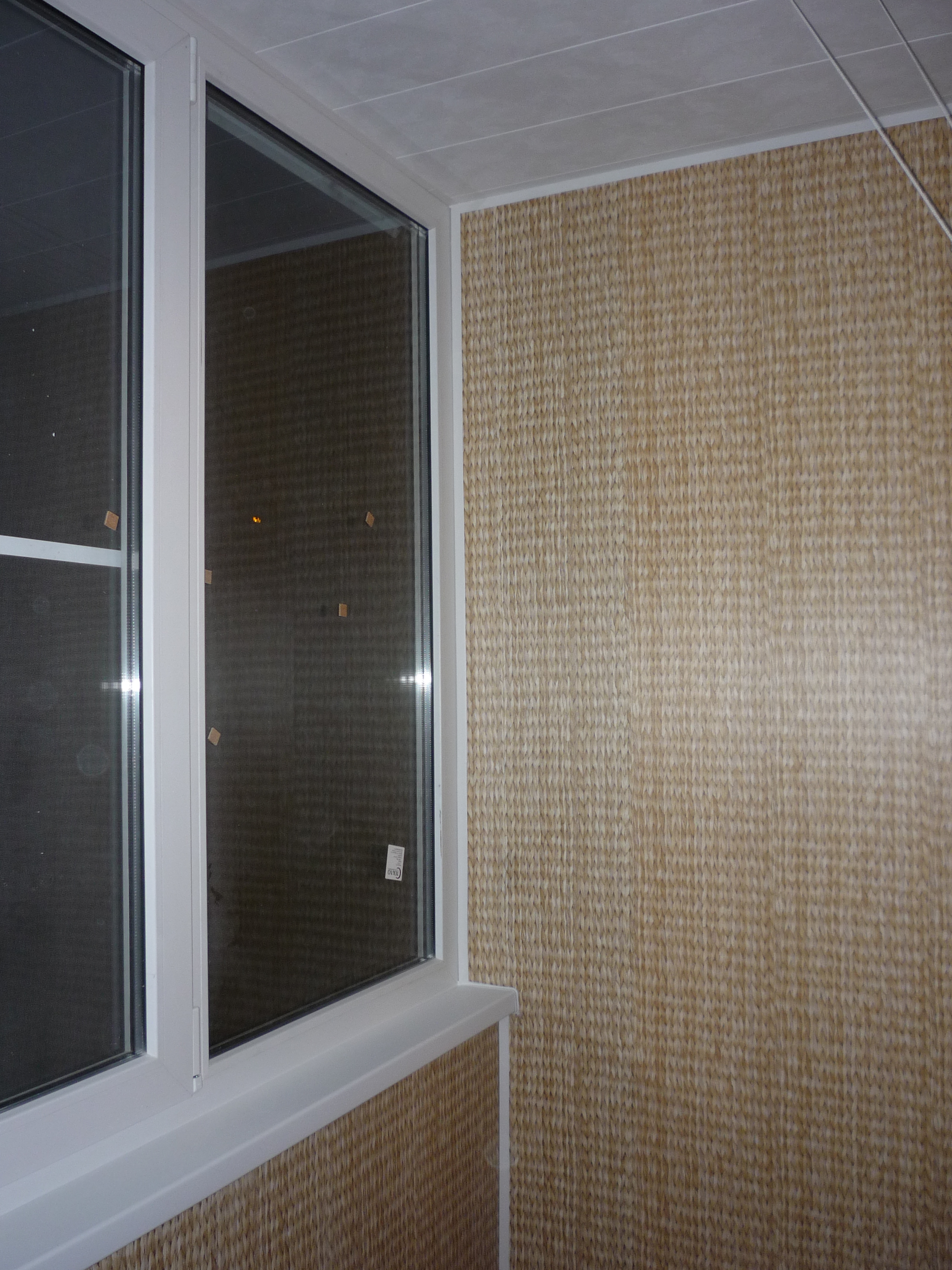 4 сентября были закончены работы по адресу Москва, ул. Коломенская. Установка остекления из ПВХ профиля Века, отделка с утеплением 50 мм с электрикой (бра, розетка, выключатель), стены и потолок панели ПВХ, пол ламинат.