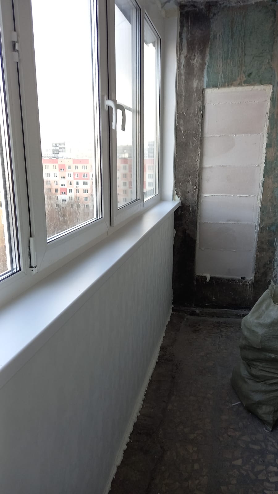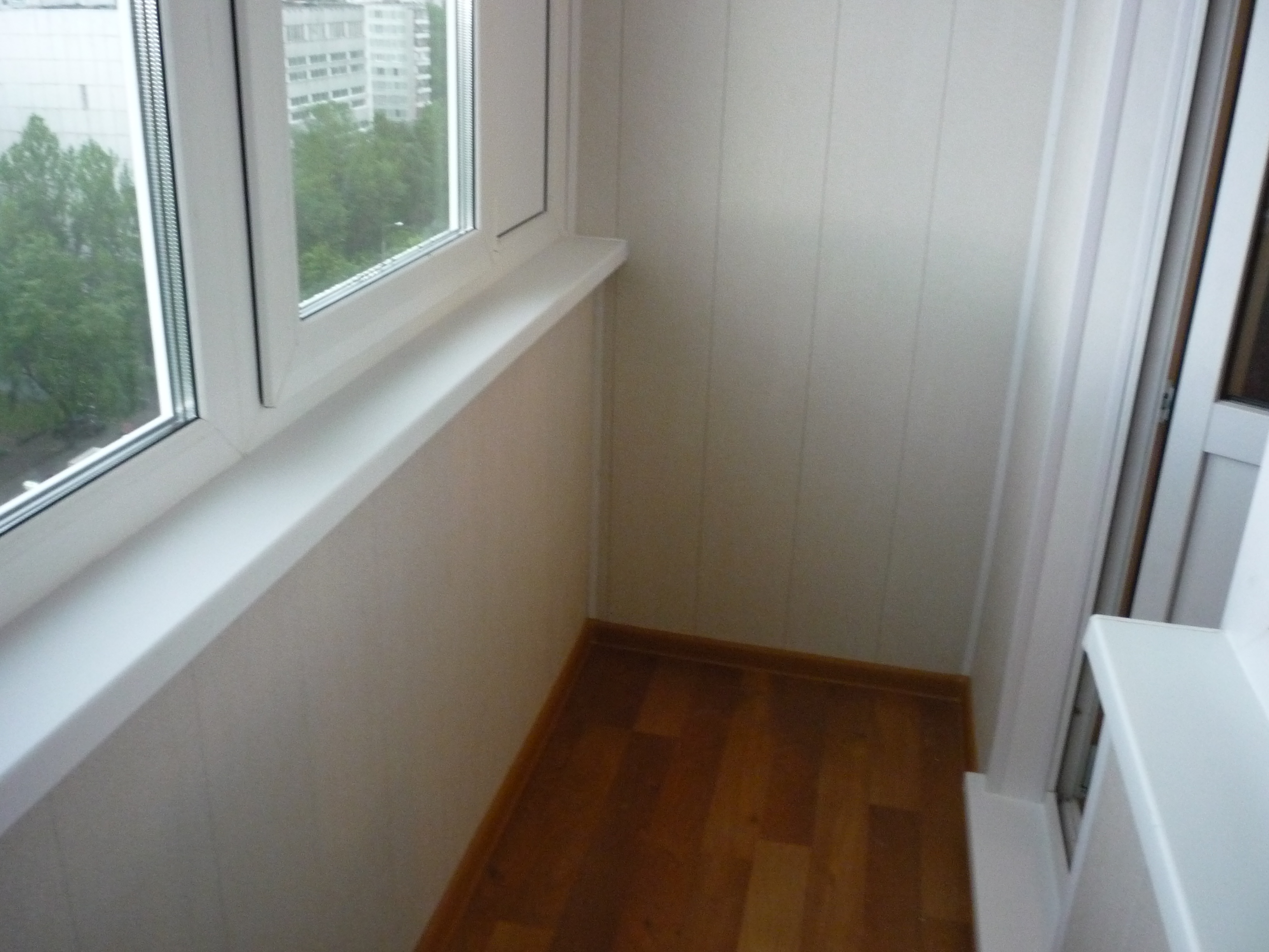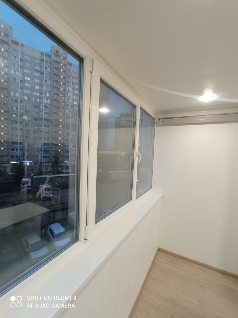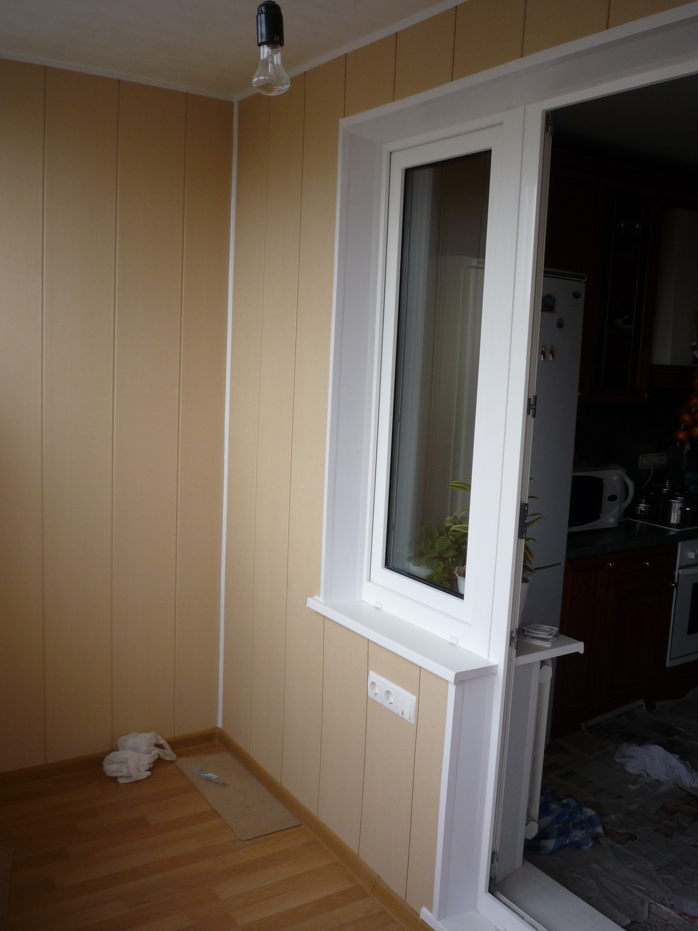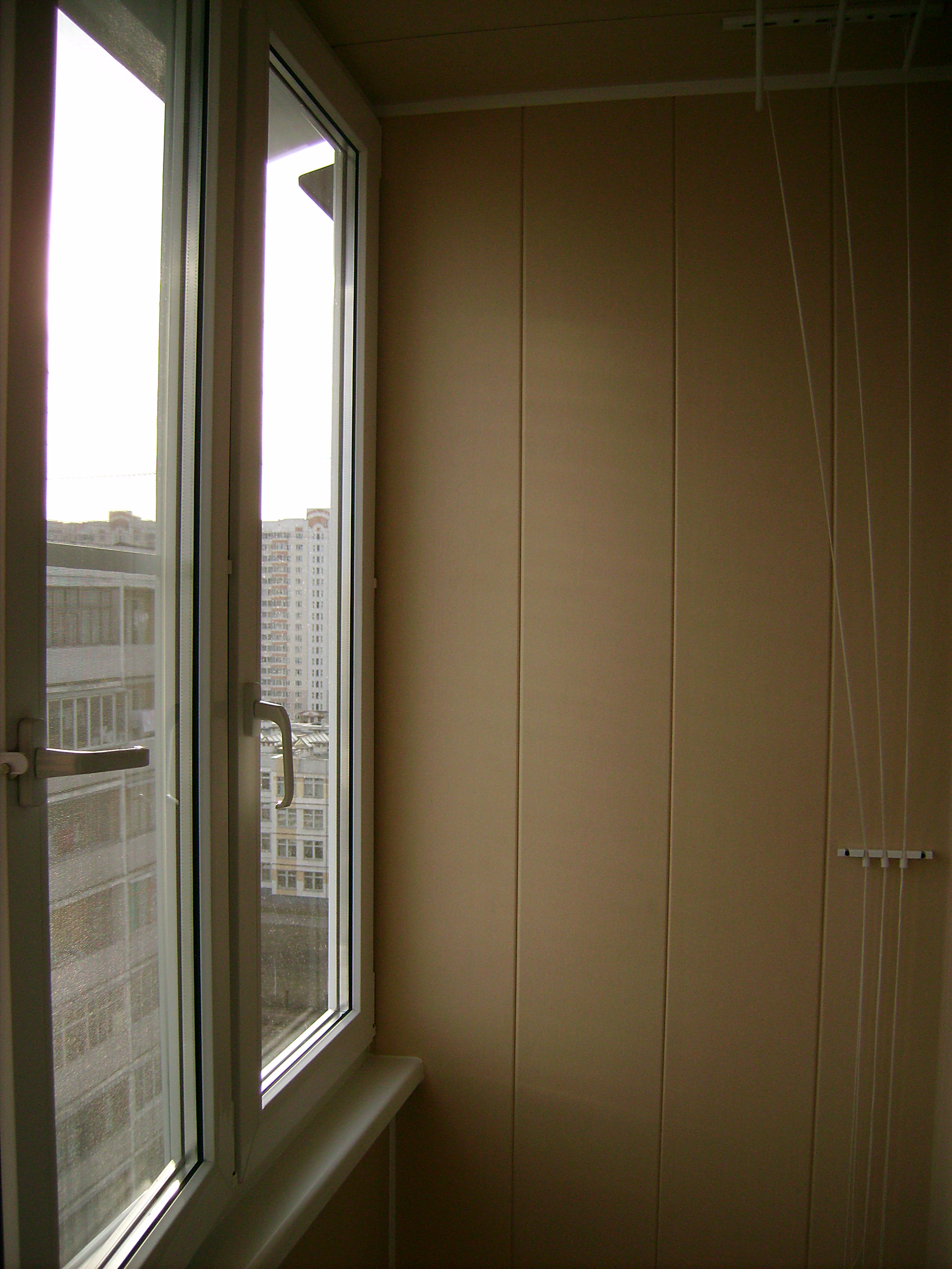 4 сентября были закончены работы по адресу Москва, ул. Коломенская. Установка остекления из ПВХ профиля Века, отделка с утеплением 50 мм с электрикой (бра, розетка, выключатель), стены и потолок панели ПВХ, пол ламинат.