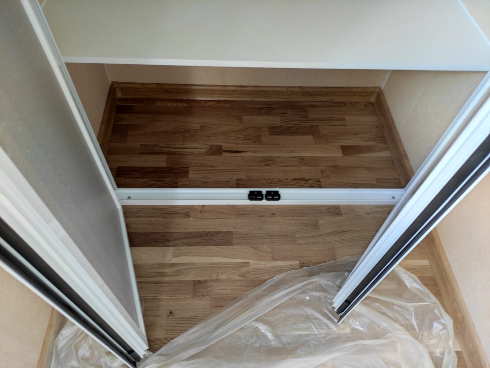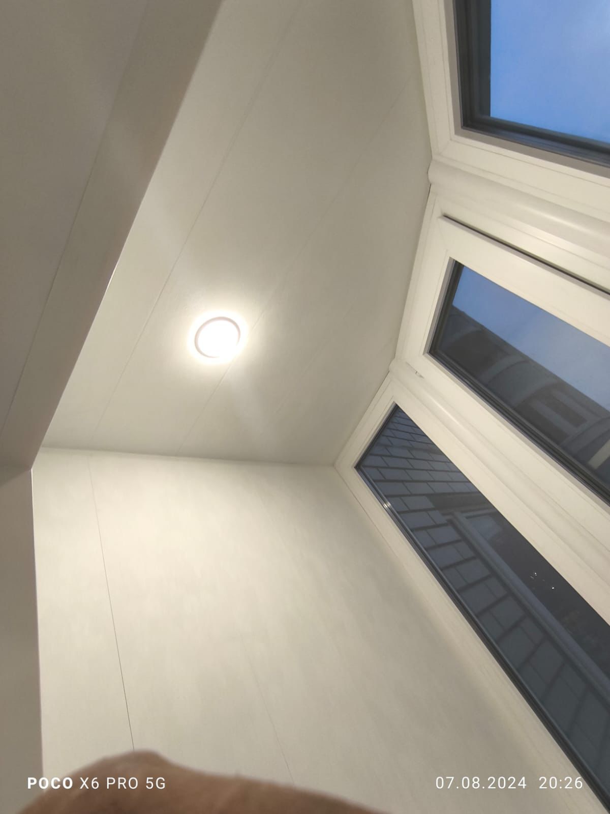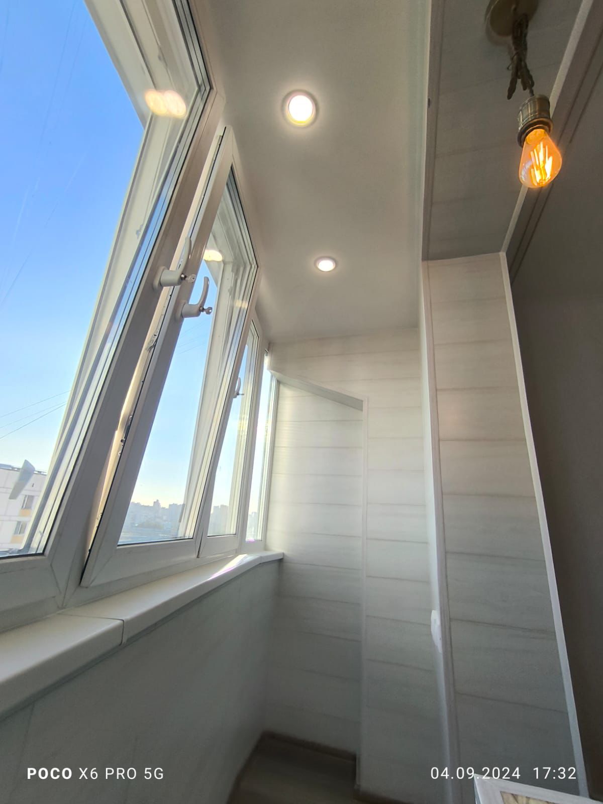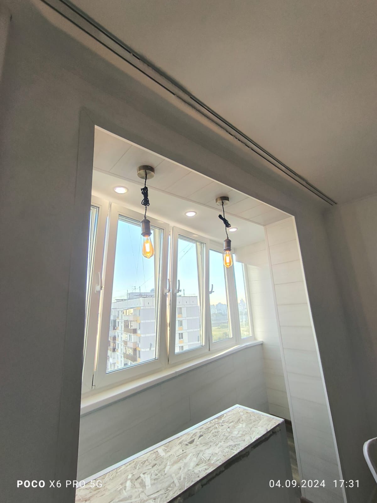 4 сентября были закончены работы по адресу Москва, ул. Коломенская. Установка остекления из ПВХ профиля Века, отделка с утеплением 50 мм с электрикой (бра, розетка, выключатель), стены и потолок панели ПВХ, пол ламинат.